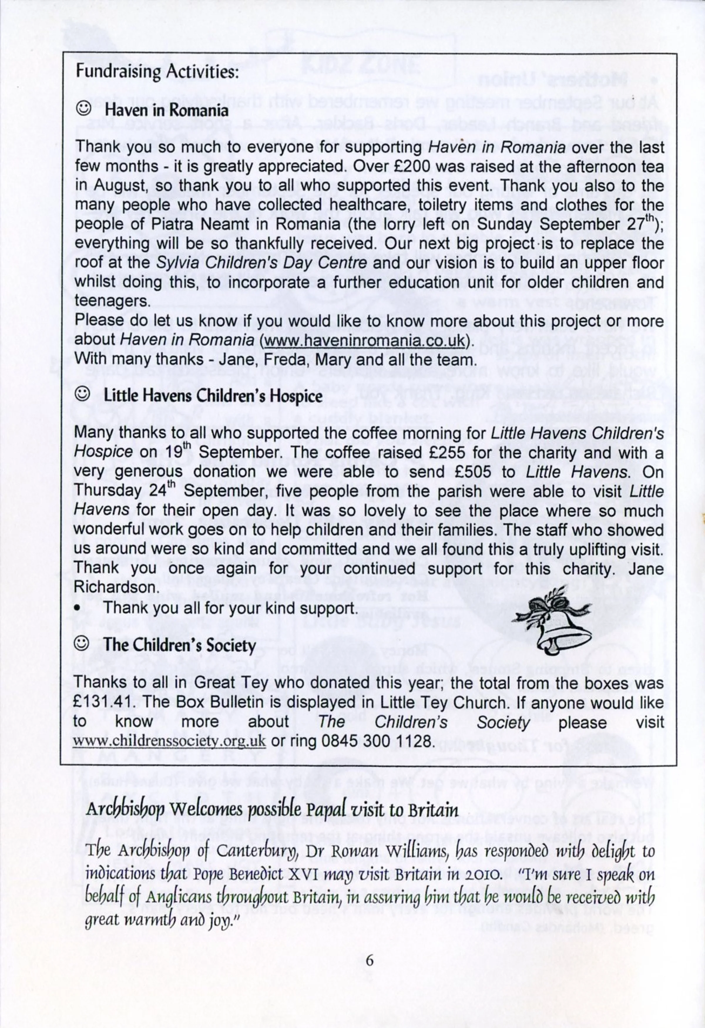Selected pages from the Parish Magazine of Great Tey and Little Tey, September and October 2009.