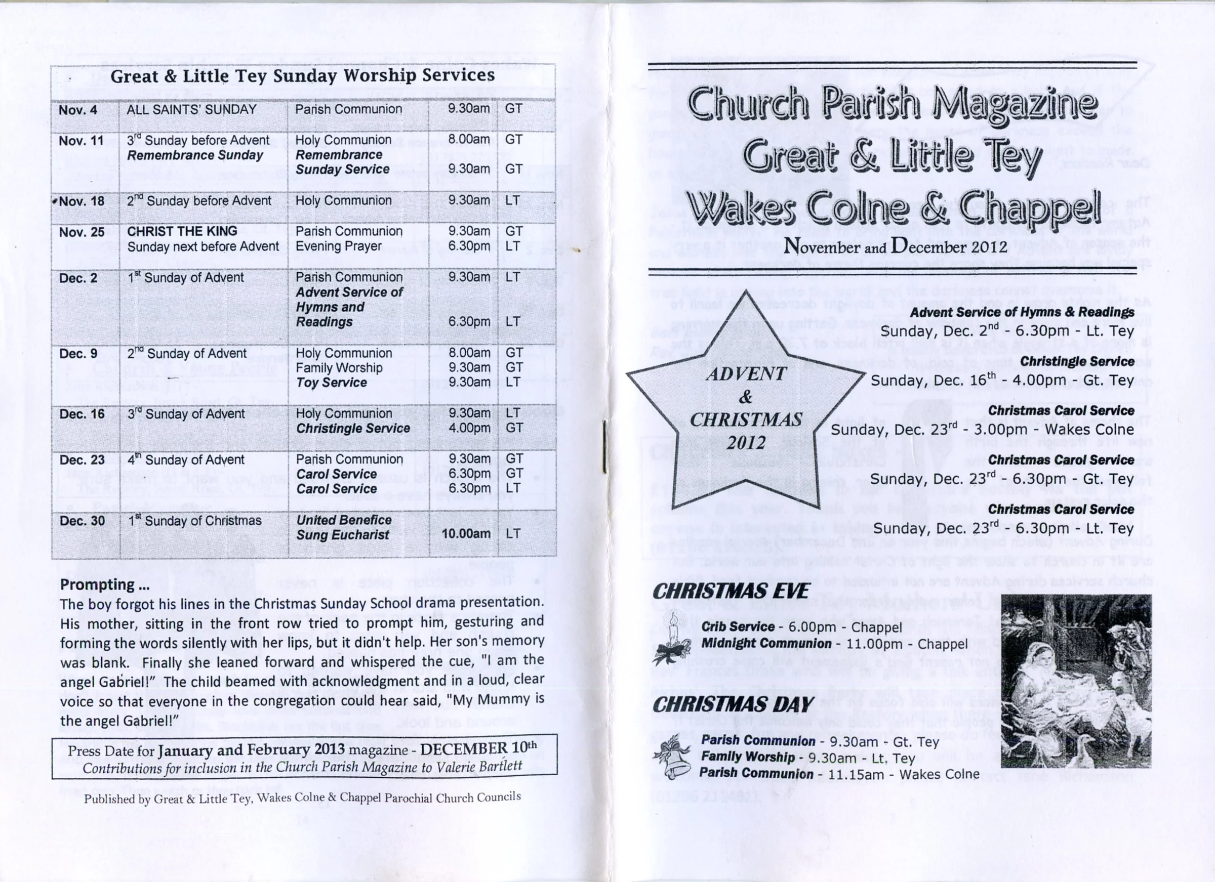Selected pages from the Parish Magazine of Great Tey and Little Tey, November and December 2012.