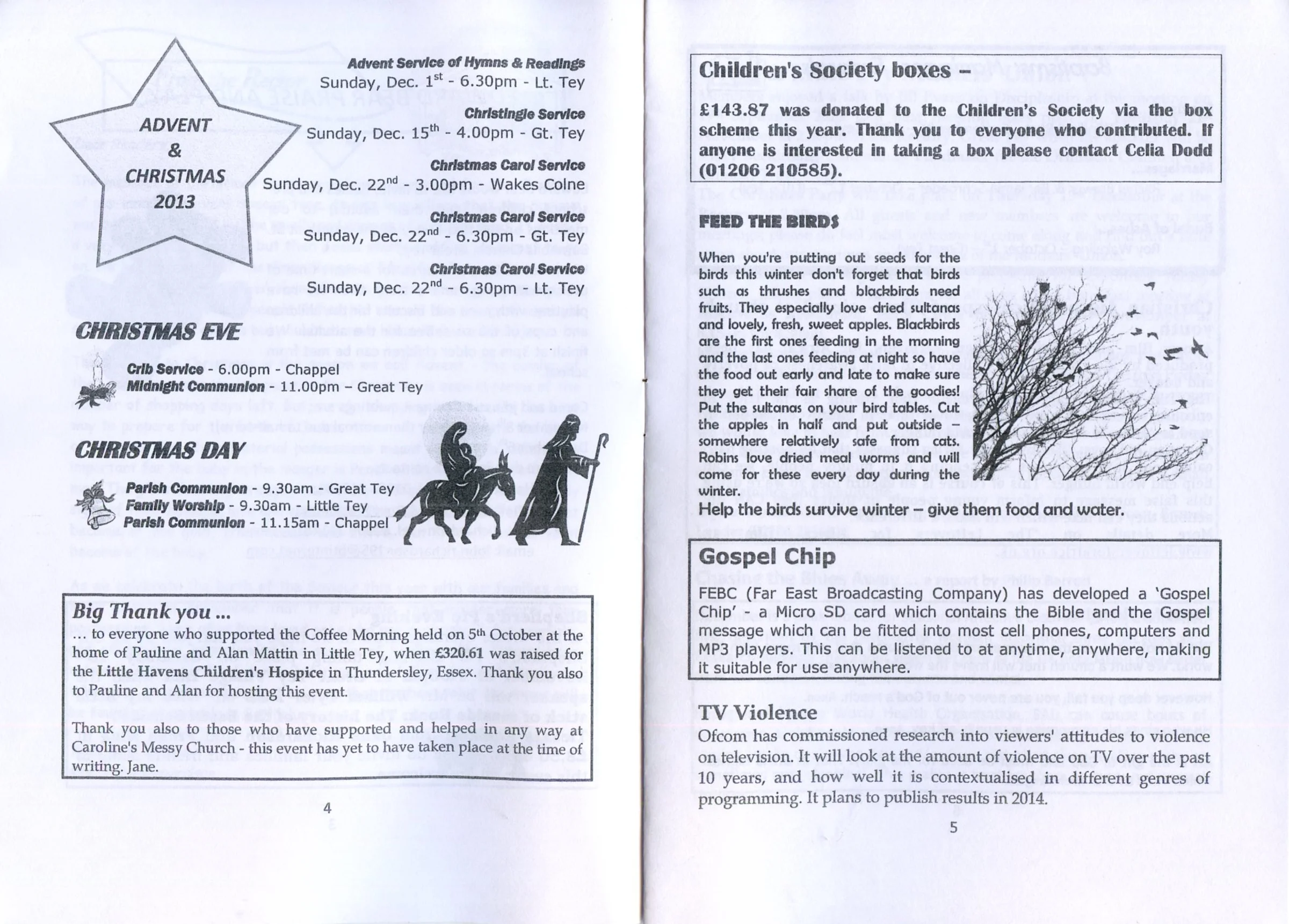 Selected pages from the Parish Magazine of Great Tey and Little Tey, November and December 2013.