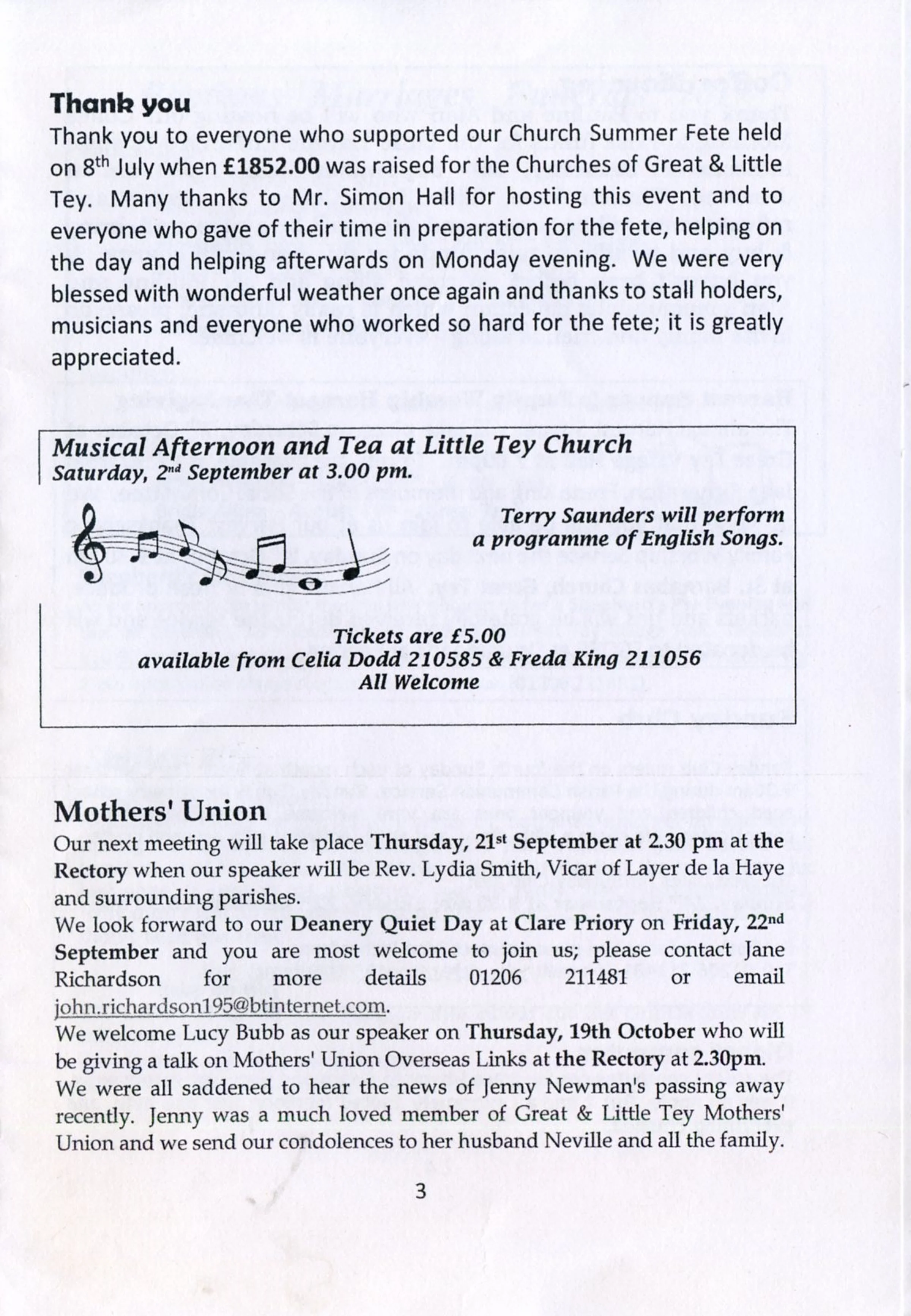 Selected pages from the Parish Magazine of Great Tey and Little Tey, September and October 2017.
