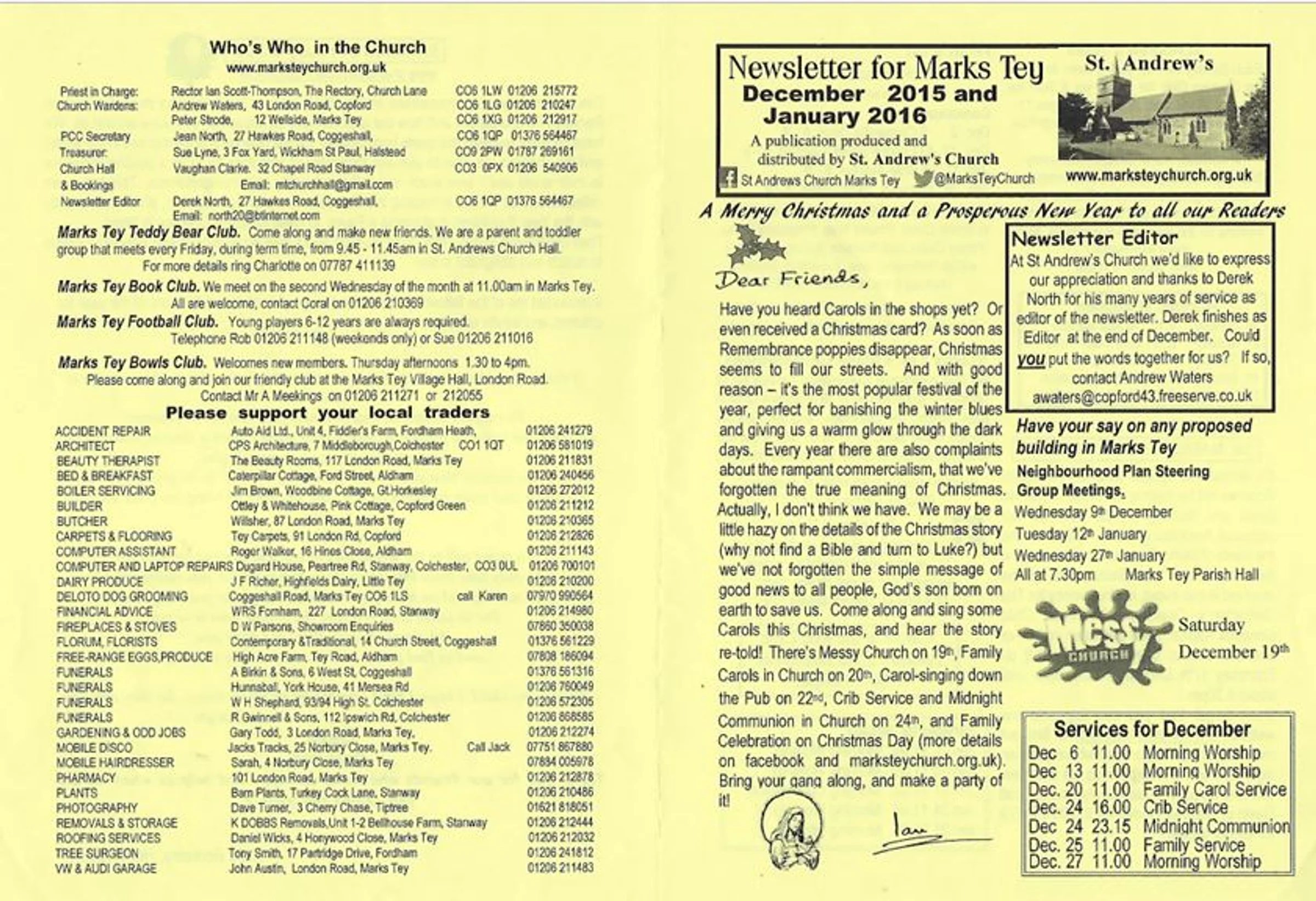 Parish of Marks Tey Newsletter, December 2015/ January 2016.