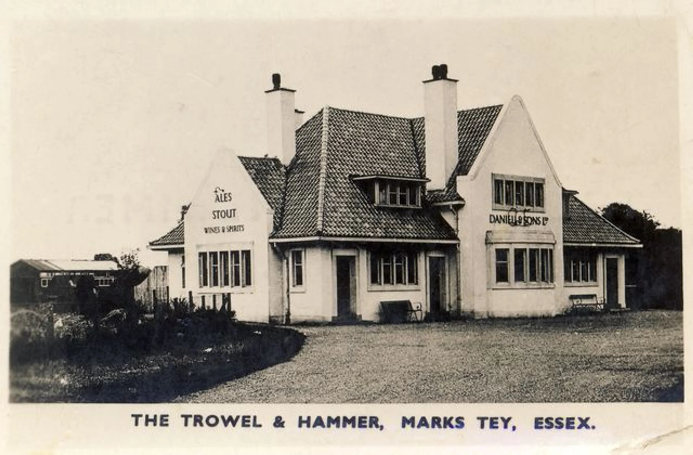 A postcard of the new Trowel and Hammer pub, built when the A12 road to London was improved and the old building was in the way.