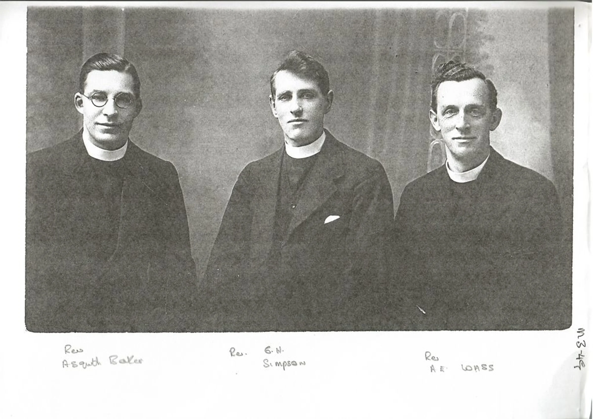 This undated photo of these men has been labelled as Rev Asquith Baker, Rev G N Simpson and Rev A E Wass.