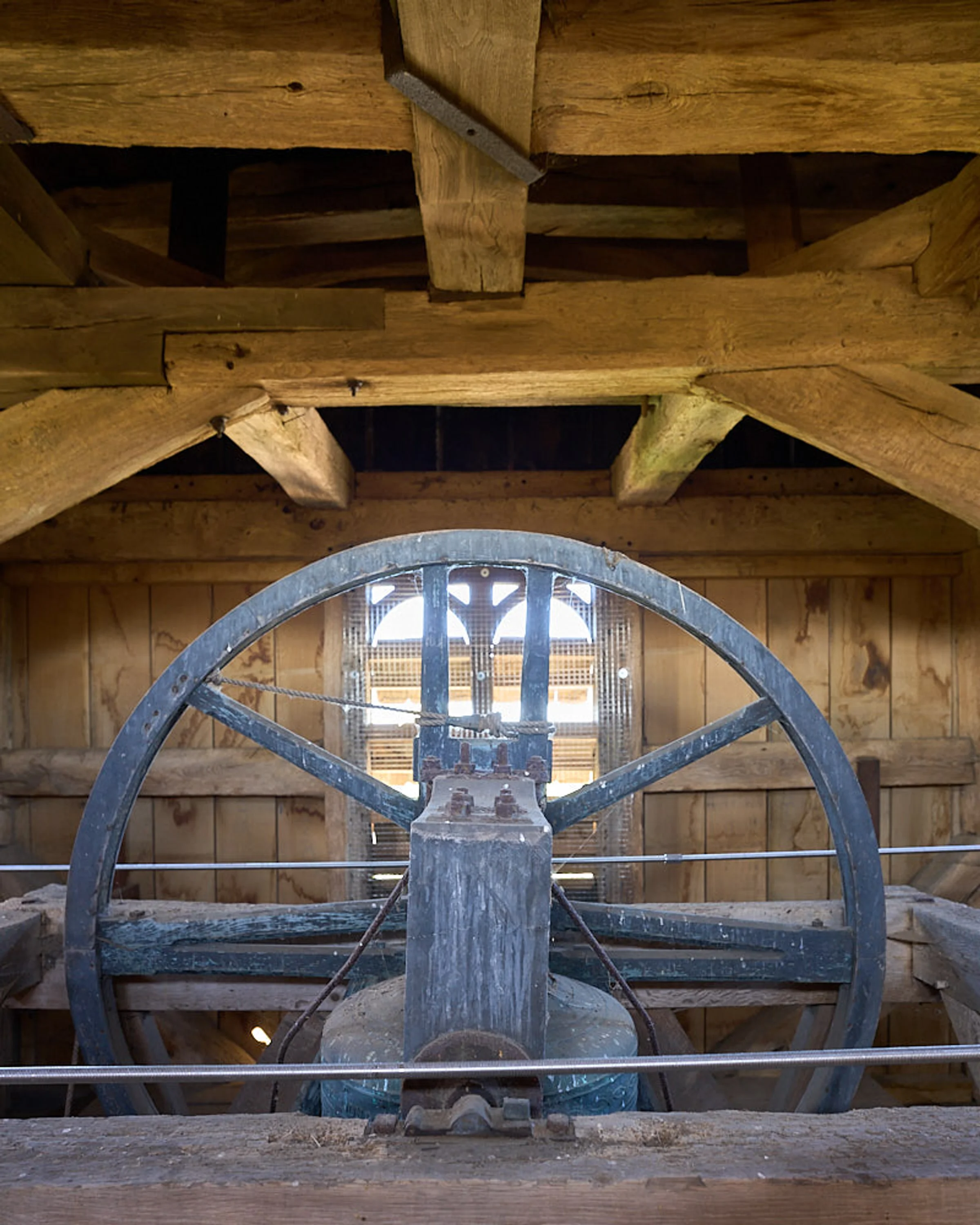 Photograph of the work-in-progress refurbishment of St Andrew’s Church tower, in 2025 as part of the National Lottery Heritage Funded project.
