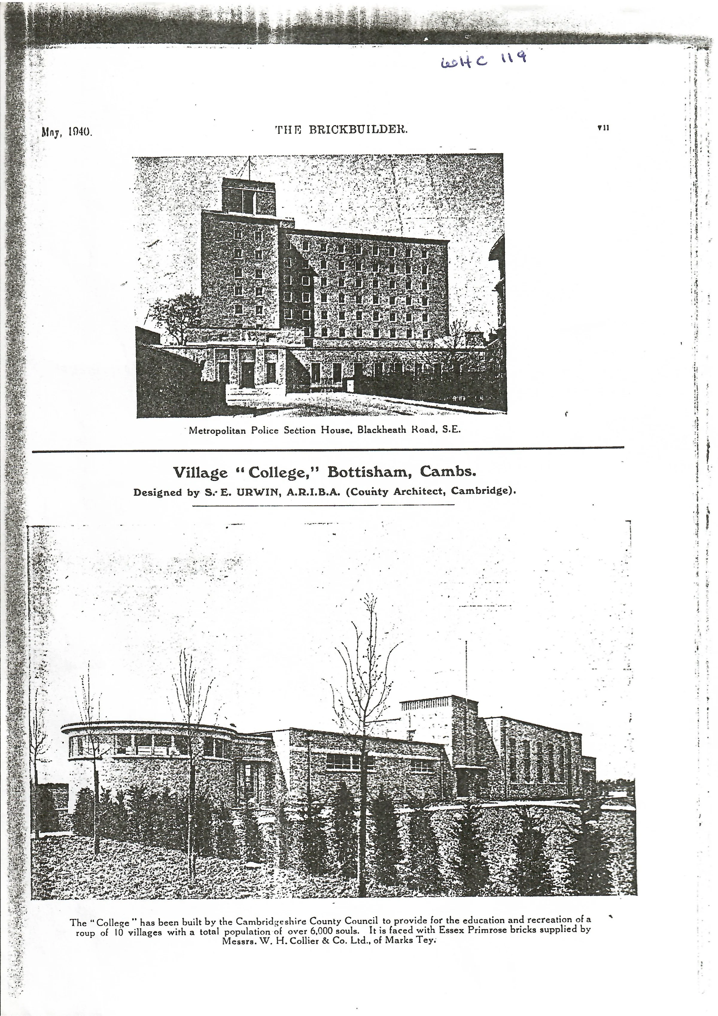 Two images of Bottisham Village's College in The Brickbuilder, May 1940.