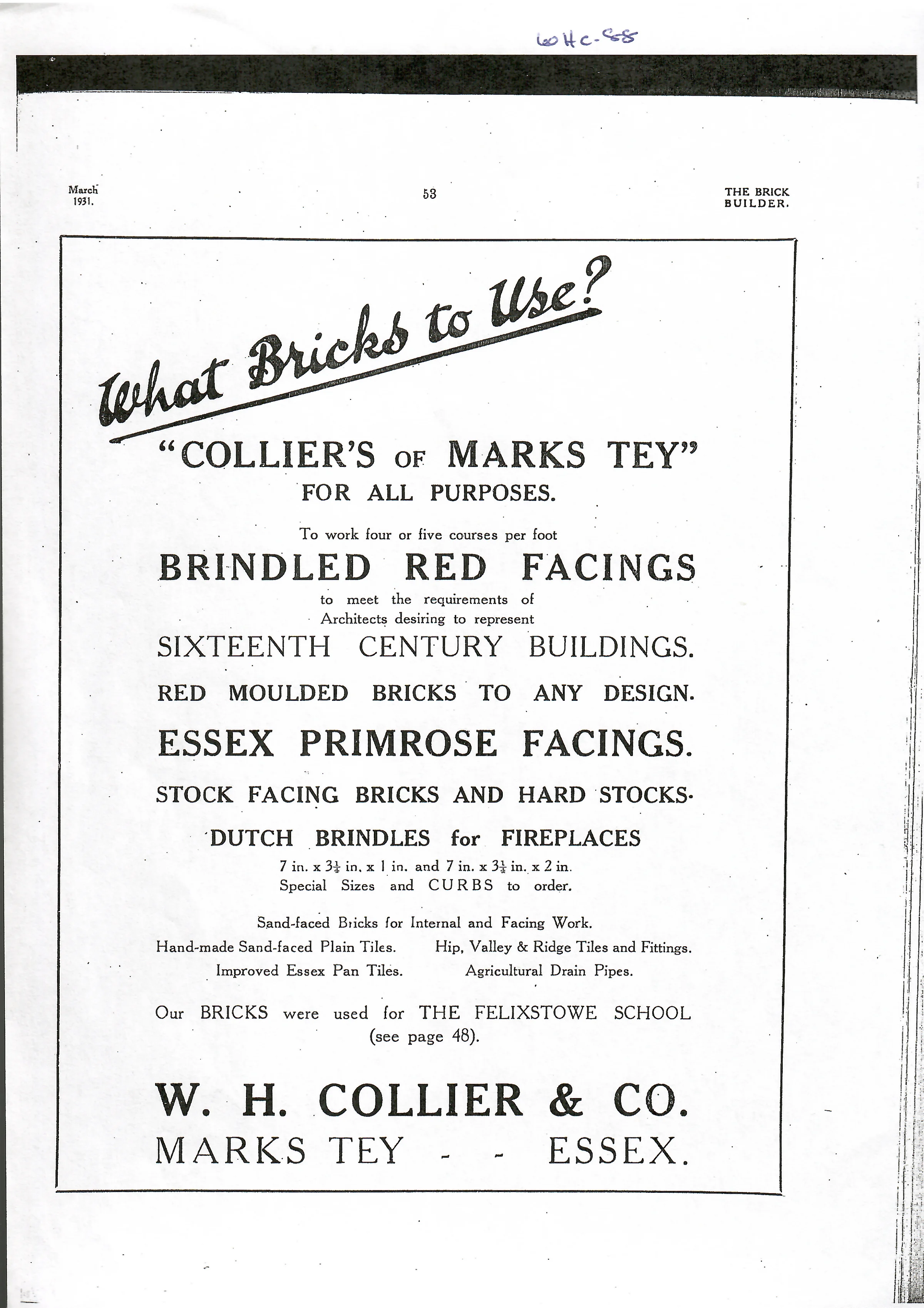 Advert in ‘The Brick Builder’, 1931