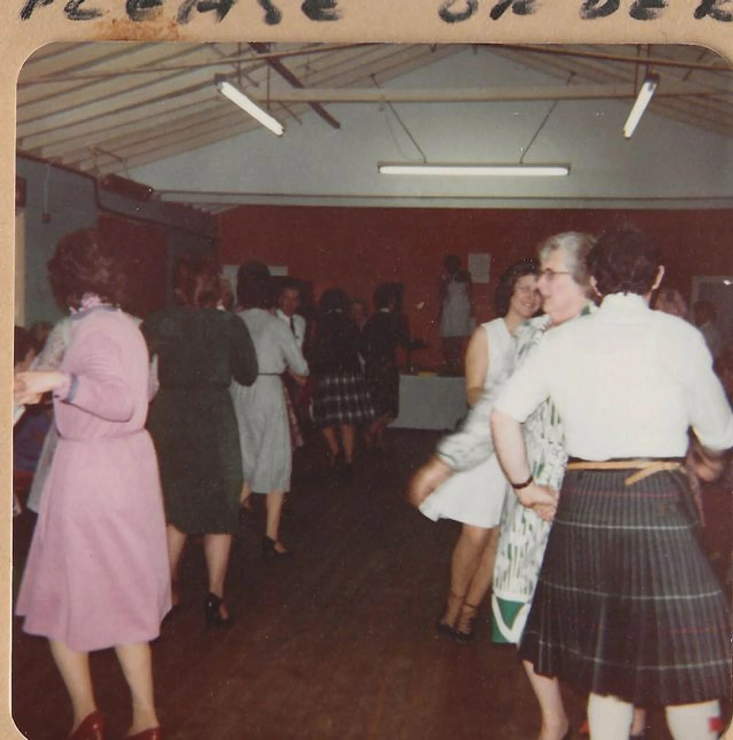 Undated colour photo of Scottish dancing at the Women Institute's Burns' Night party.