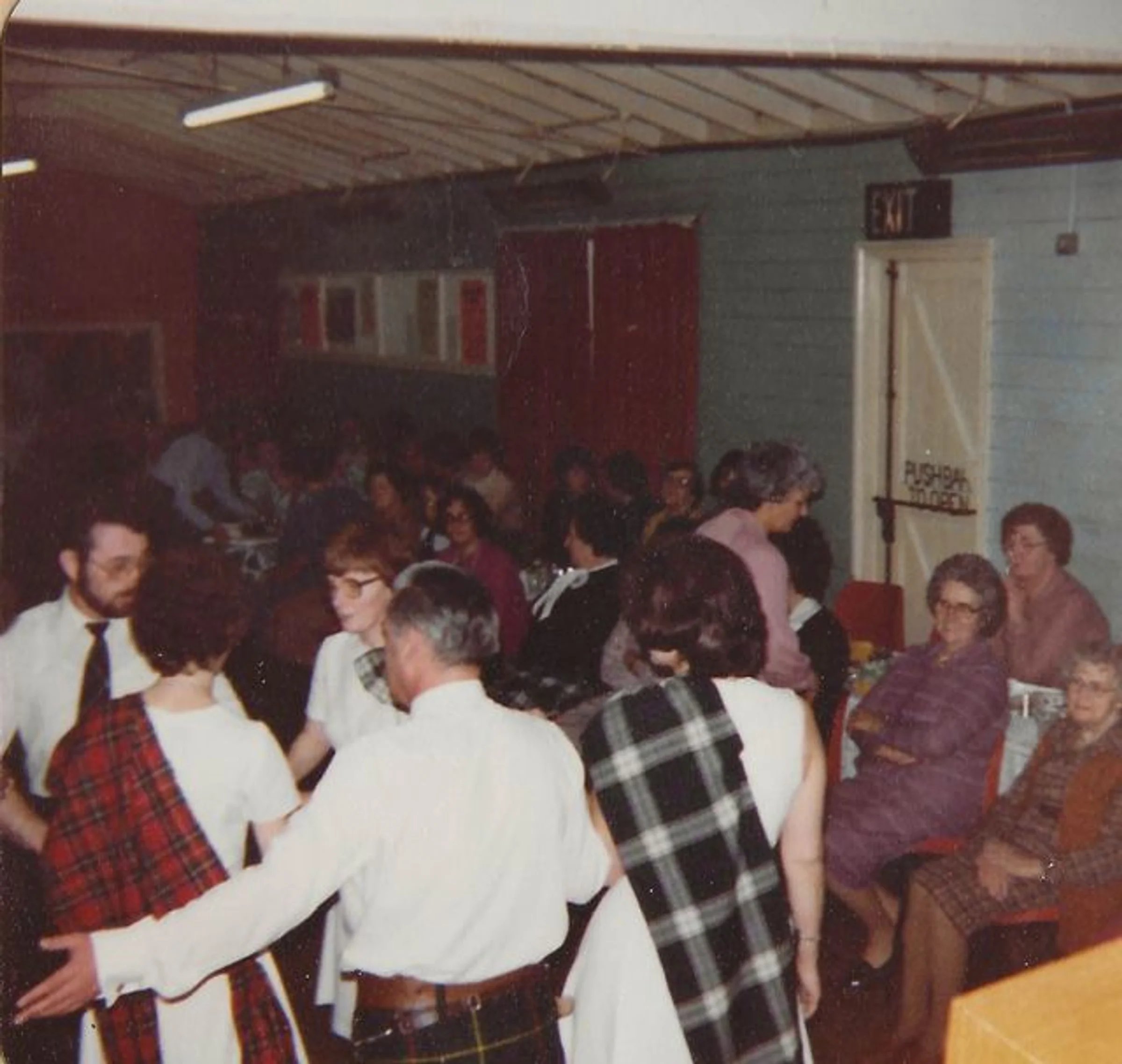 Undated colour photo of members and guests at the Women Institute's Burns' Night party.