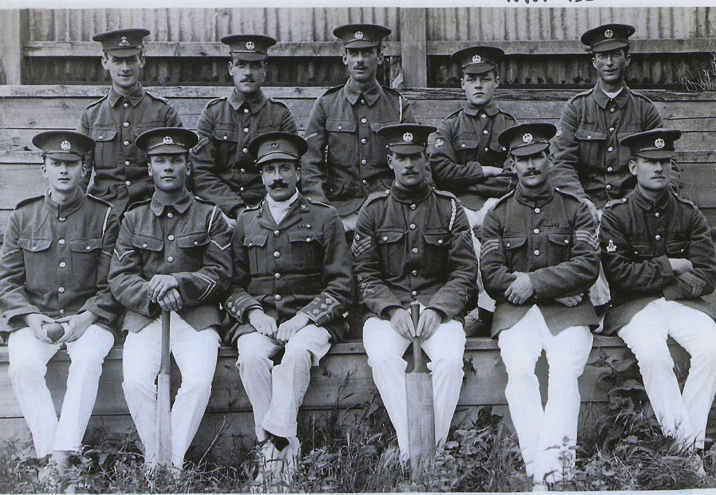 Photograph of Ernest Jones in a cricket team, in military uniform.