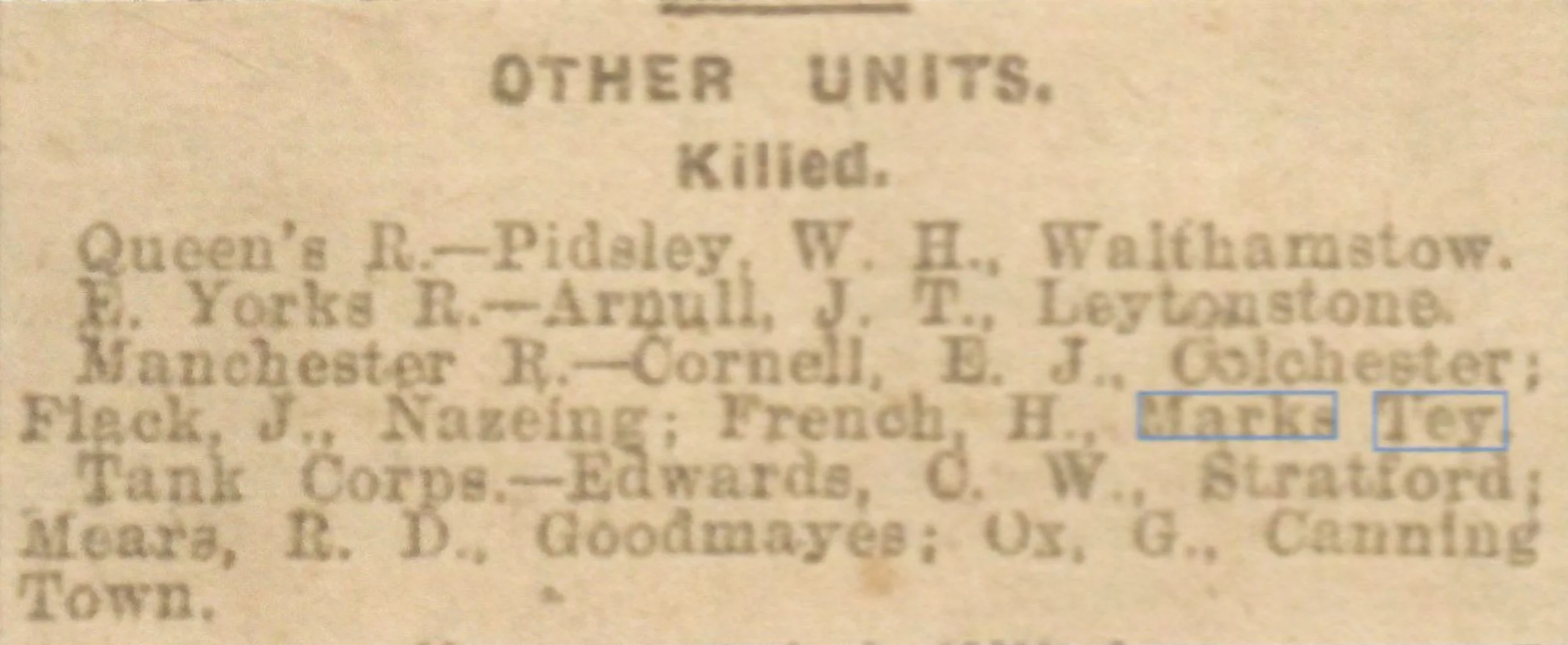 Newspaper report of the death of H. French, killed in action.
