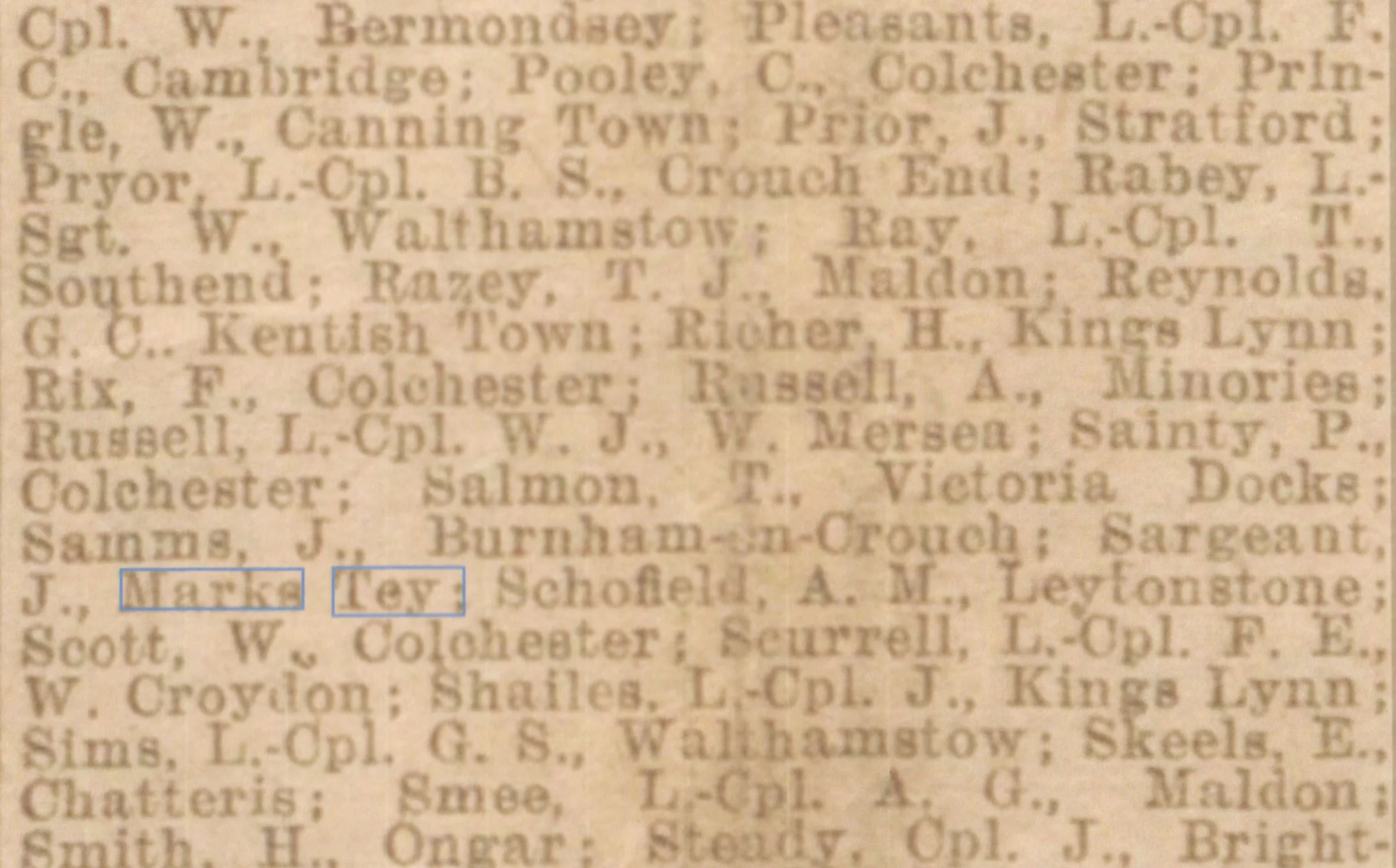 Newspaper listing of those wounded in action, including J. Sargeant.