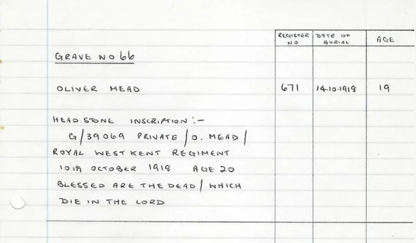 WWI Oliver Mead certificate