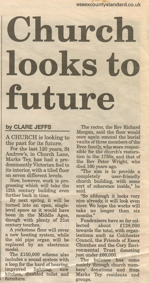 St Andrew's Church reordering article standard