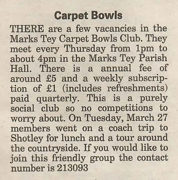Carpet Bowls news 2001 April
