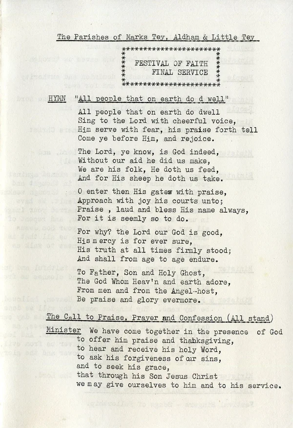 Harvest Festival Service copied for use at Marks Tey