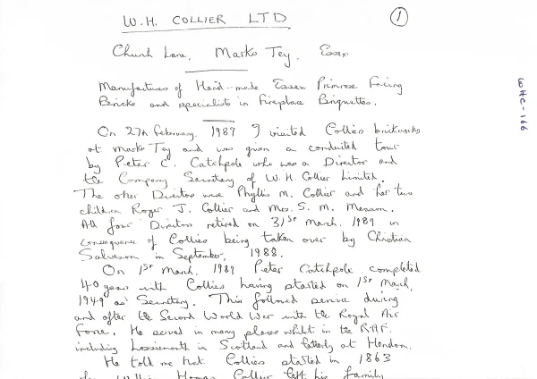 Marks Tey Hall, some historical historical notes thereon, transcript