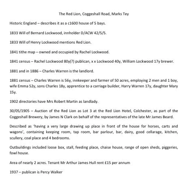 A history of The Red Lion, Coggeshall Road, Marks Tey