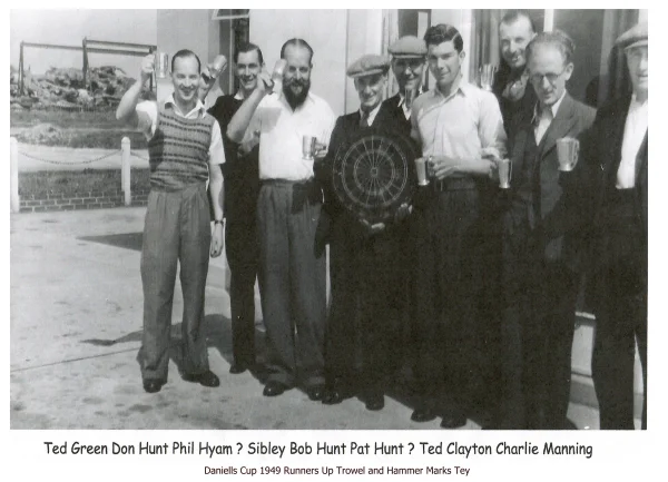 Prize for darts match at Trowel and Hammer, 1949