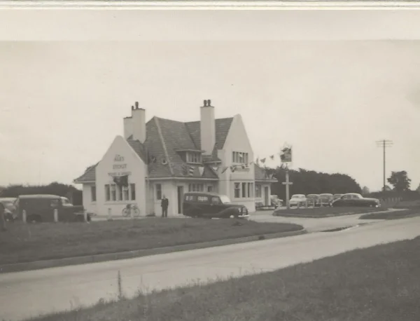 Postcard of The Trowel and Hammer pub, replacement building