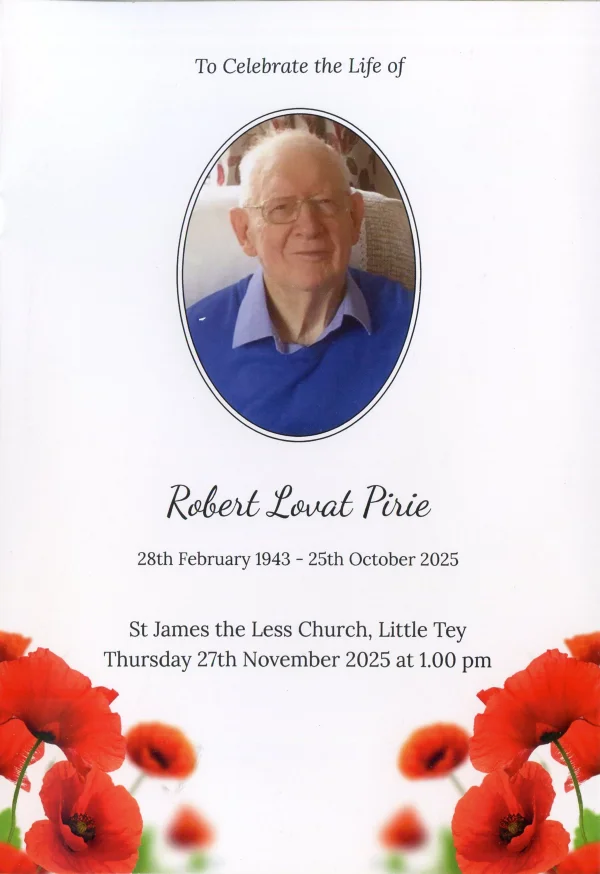 Little Tey Church funeral, Bob Pirie