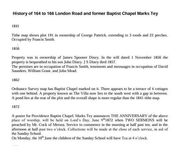 History of 164 to 166 Old London Road and former Baptist Chapel