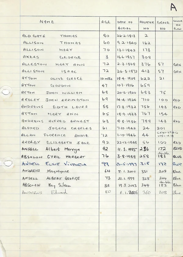 Burials 'A' 1801-present