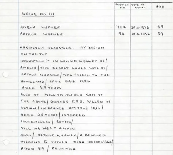 Headstone Grave 111, red area