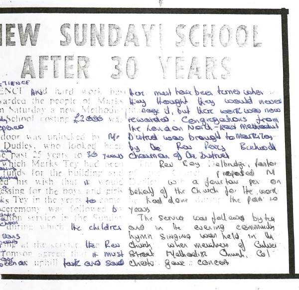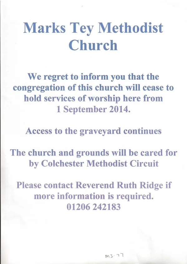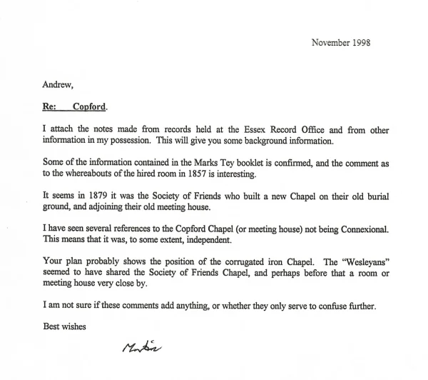 Letter and information about former Methodist buildings in Marks Tey