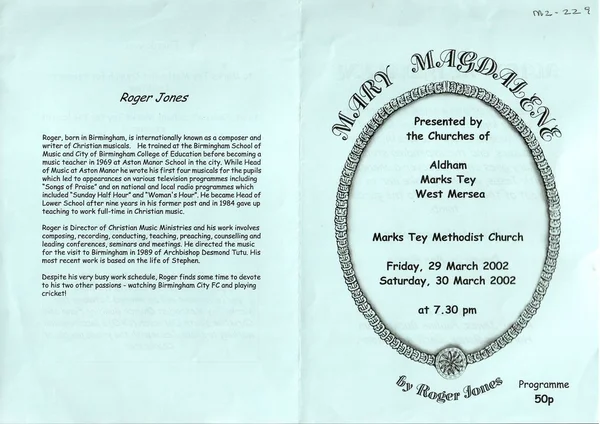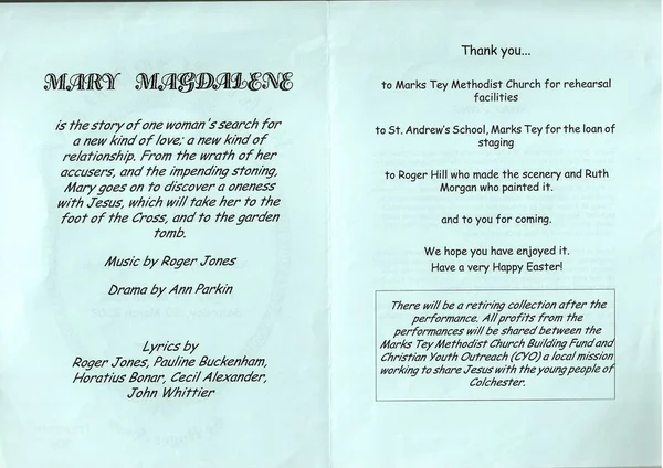 Programme for The Tey Singers concert at Marks Tey Methodist Church in 1993