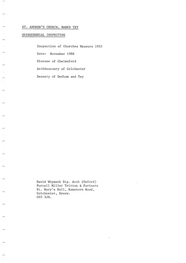 1986 Quinquennial Inspection