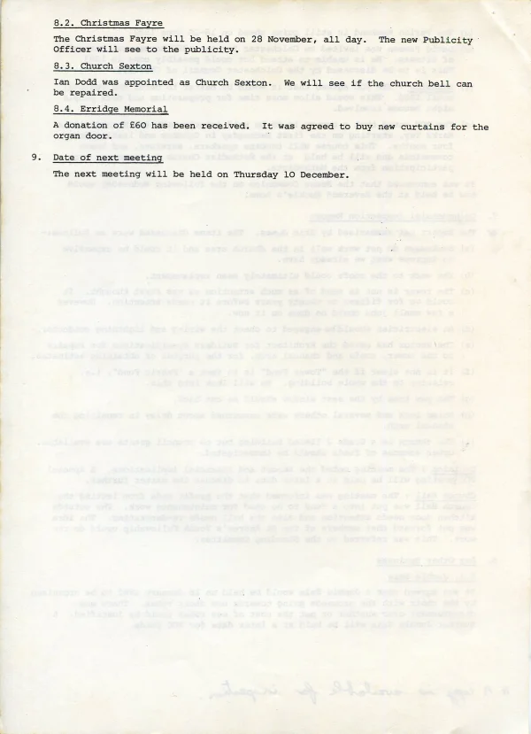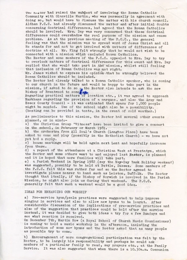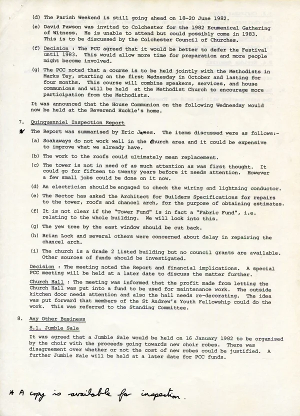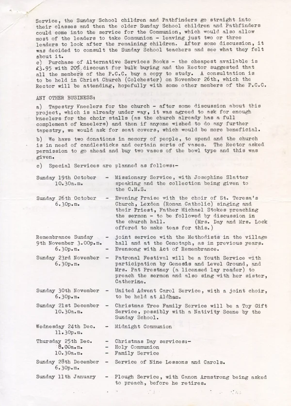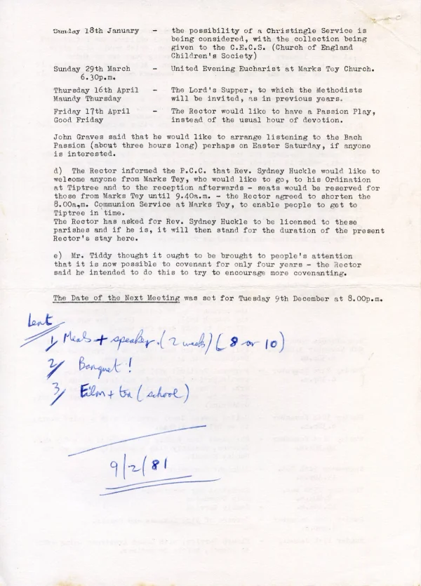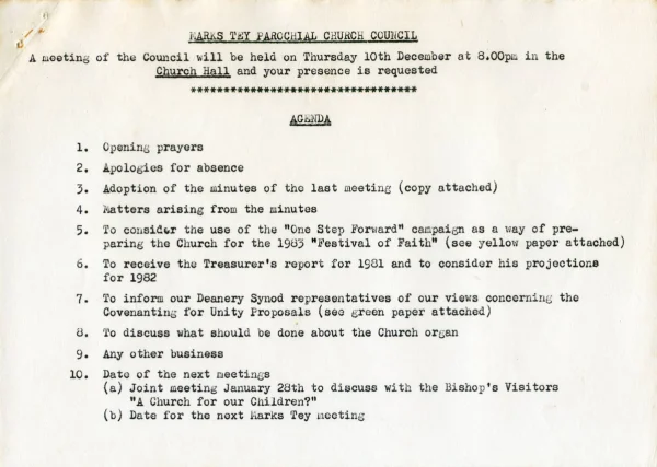 St Andrews' Church PCC Dec agenda 1981