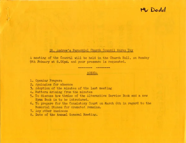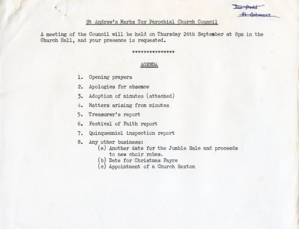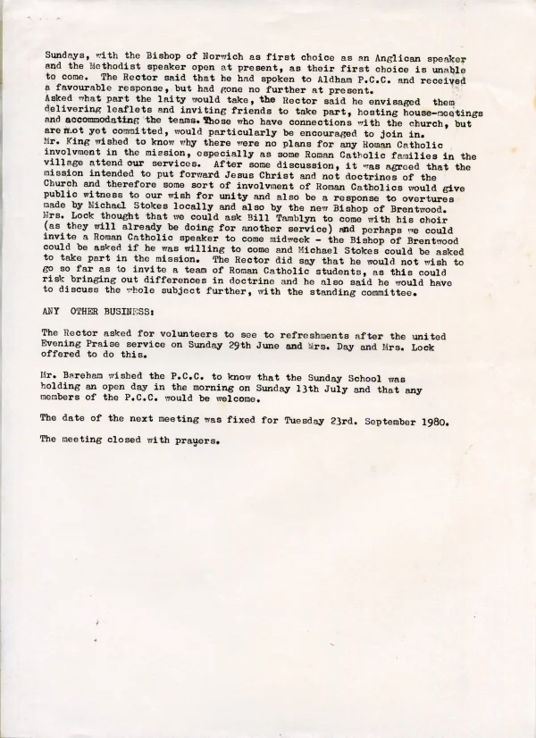 St Andrew's Church PCC agenda Sept 1980