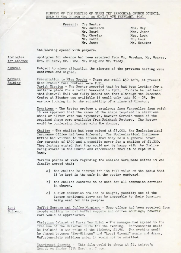 St Andrew's Church PCC Feb 1981