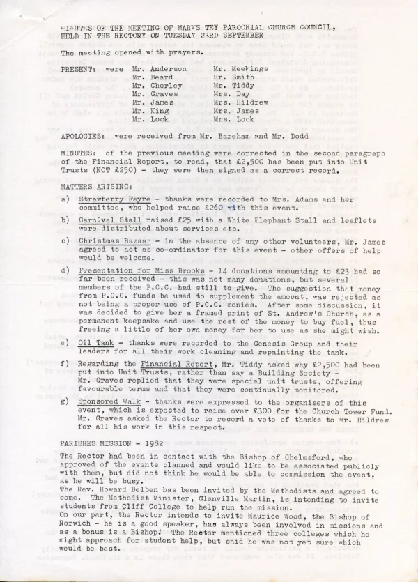 St Andrew's Church PCC Sept 1981