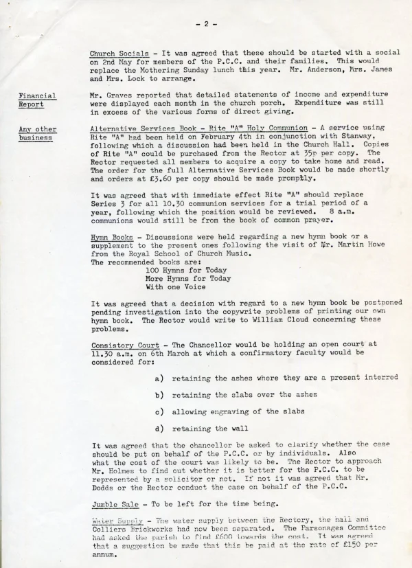 St Andrew's Church PCC Feb agenda 1981