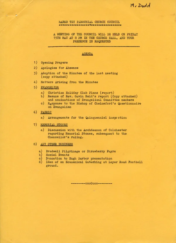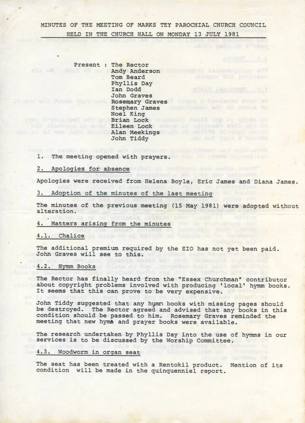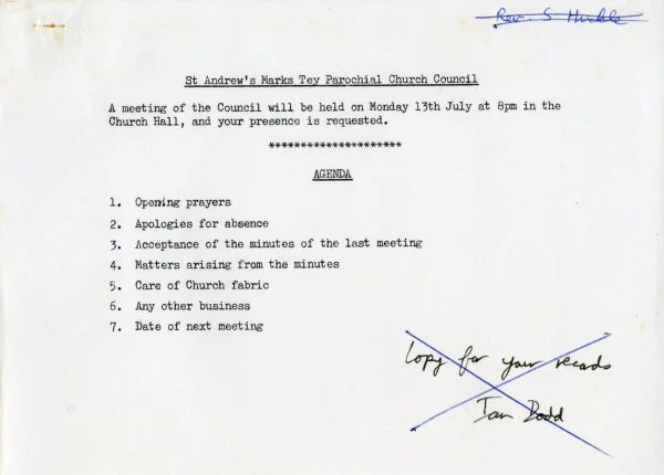 St Andrew's Church PCC July agenda 1981
