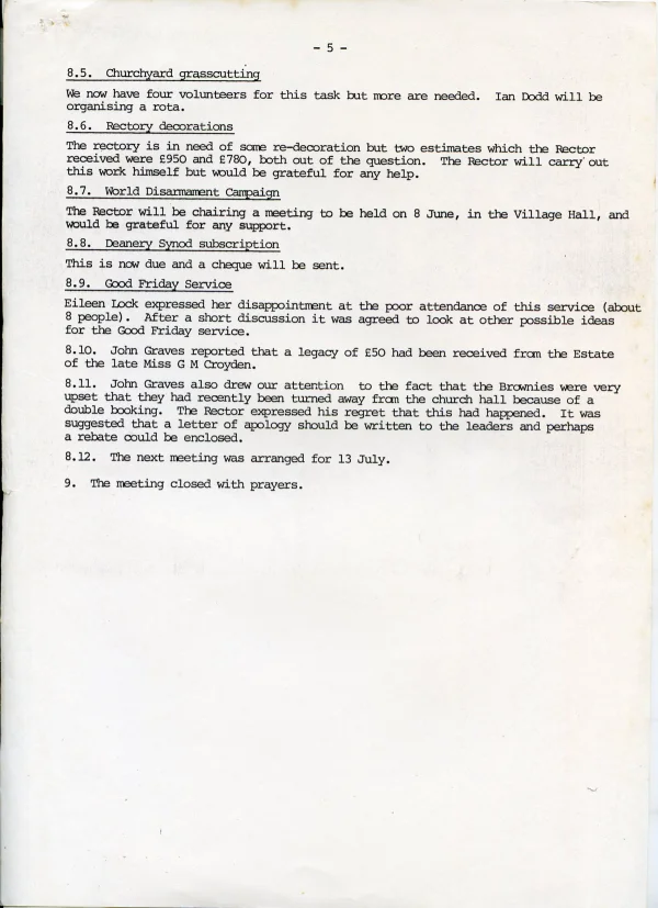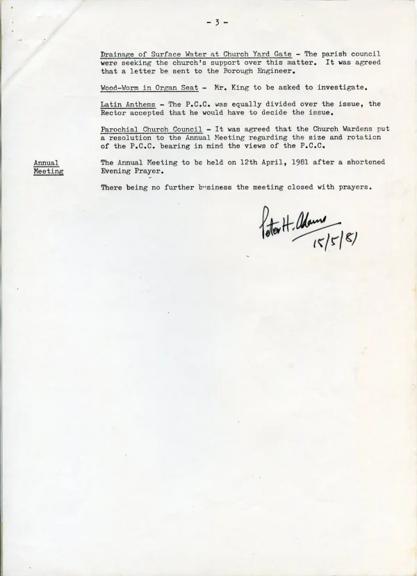 St Andrew's Church PCC May agenda 1981