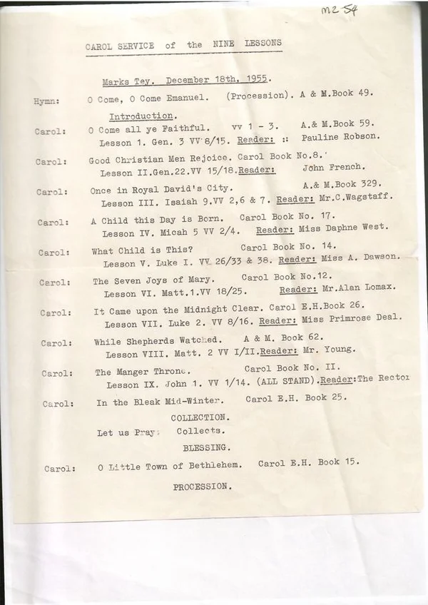 St Andrew's Church carol service 1955
