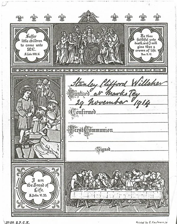St Andrew's Church baptism certificate 1914