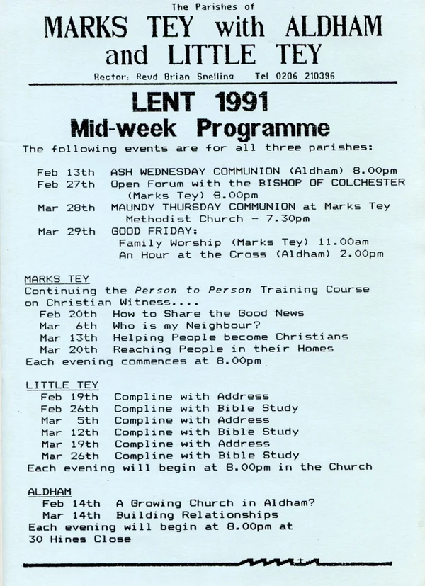 Lent 1991, Mid-week Programme