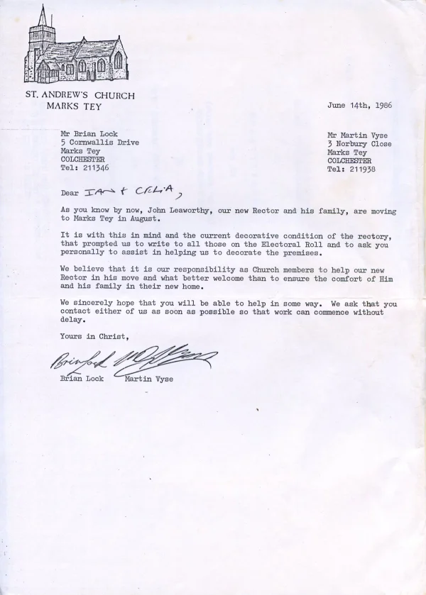 Letter from churchwardens about the Rectory, 1986