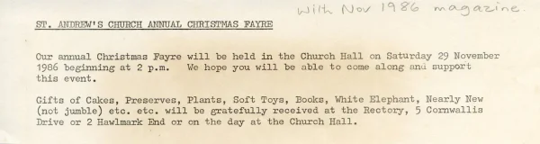 Christmas Fayre notice, 1986