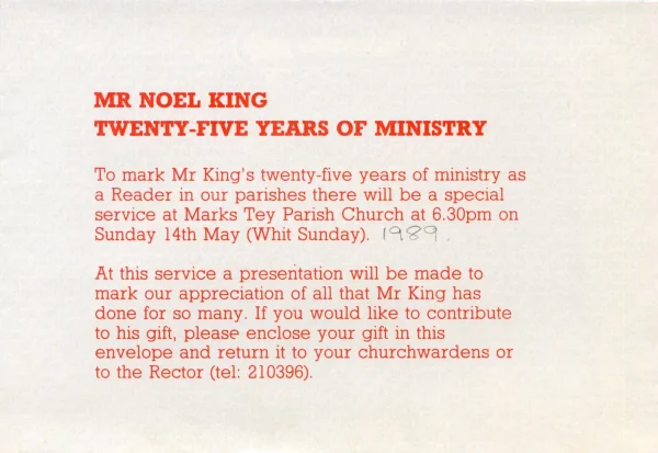 Envelope for donations for Noel King, 1989