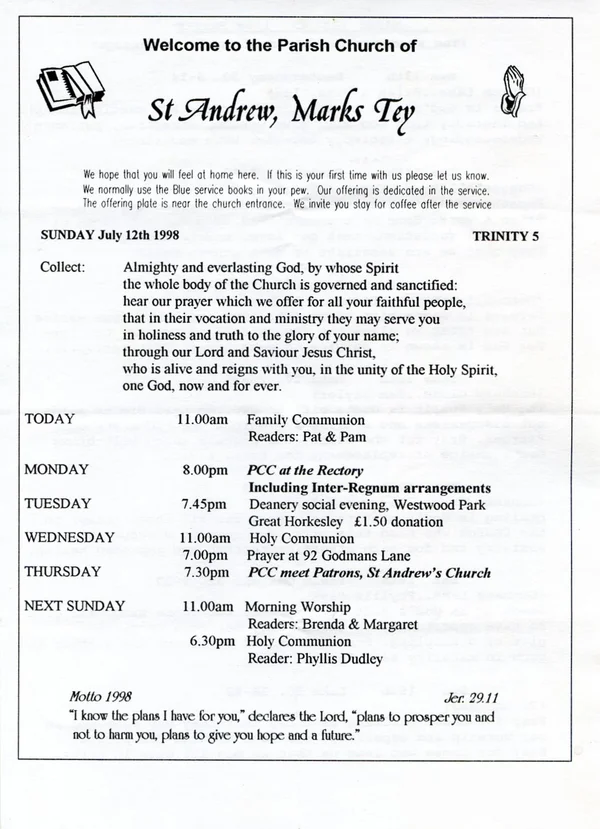 12 July 1998 Sunday news sheets from St Andrew's