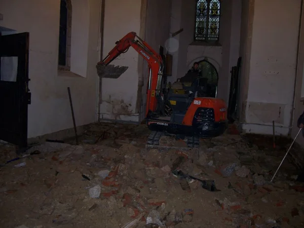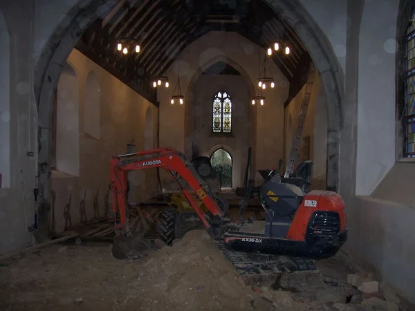 St Andrew's Church mechanical excavator in nave 3