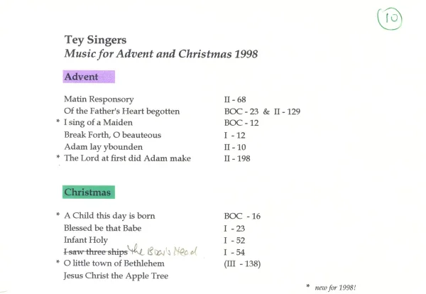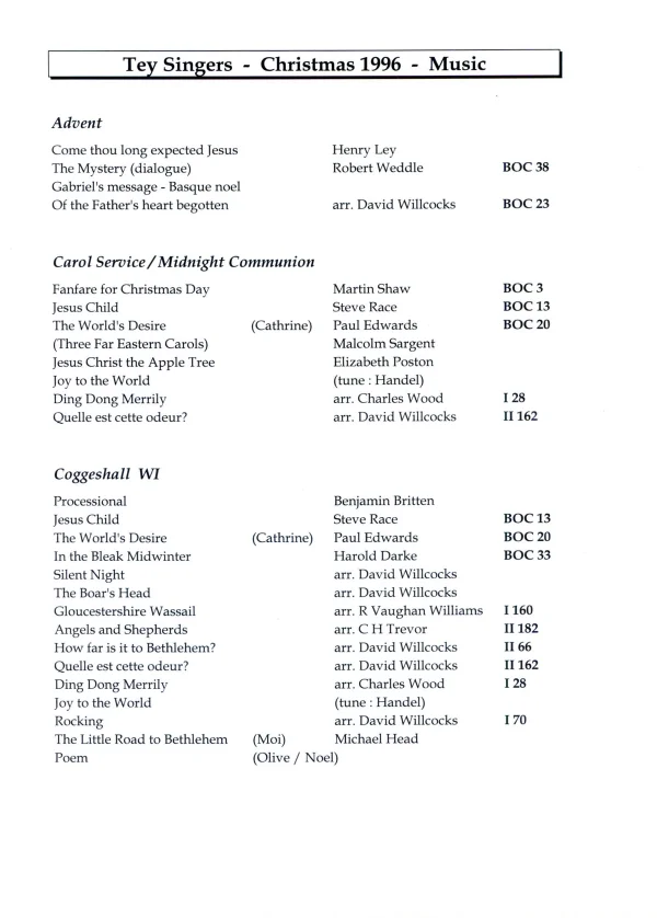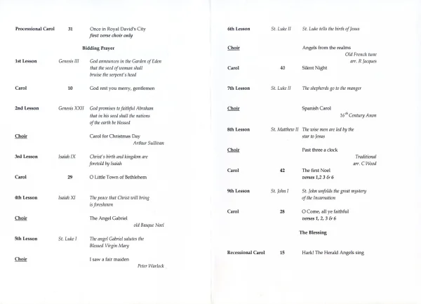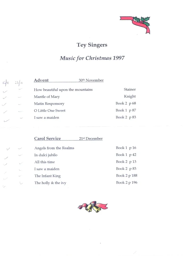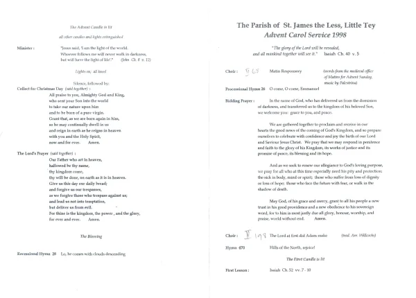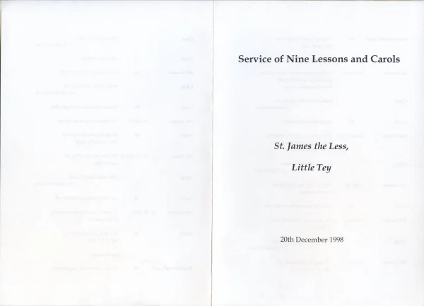 Christmas Carol Service Sheet for Little Tey church, 1998