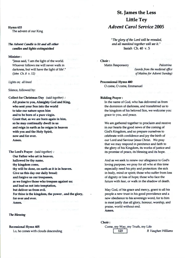 Christmas Carol Service Sheet for Little Tey church, 2005