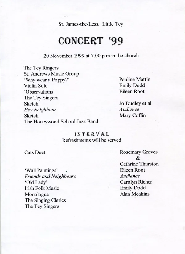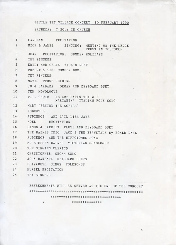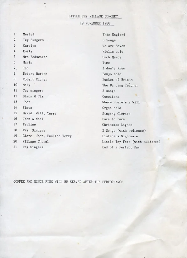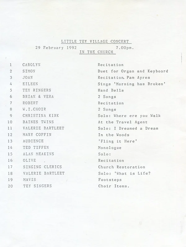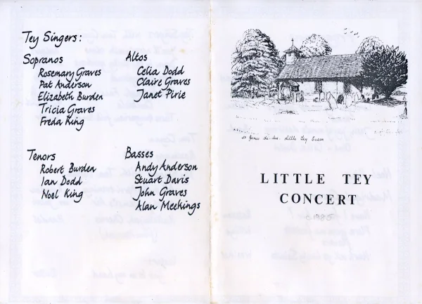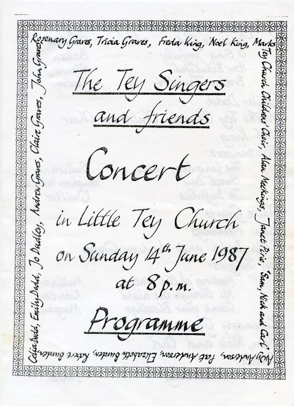 Programme for The Tey Singers Concert at Little Tey church in 1987