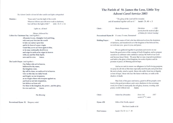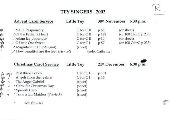 Christmas Carol Service Sheet for Little Tey church, 2003