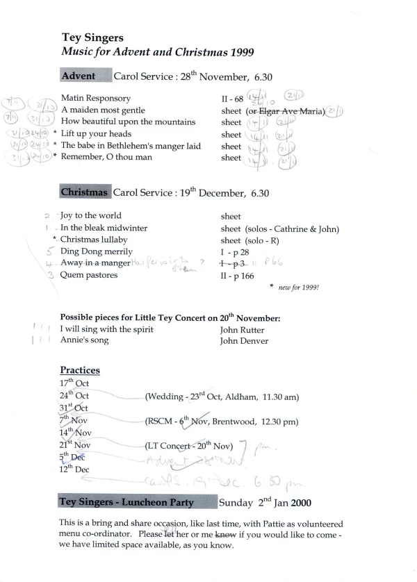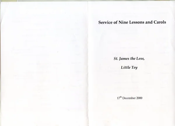 Christmas Carol Service Sheet for Little Tey church, 2000